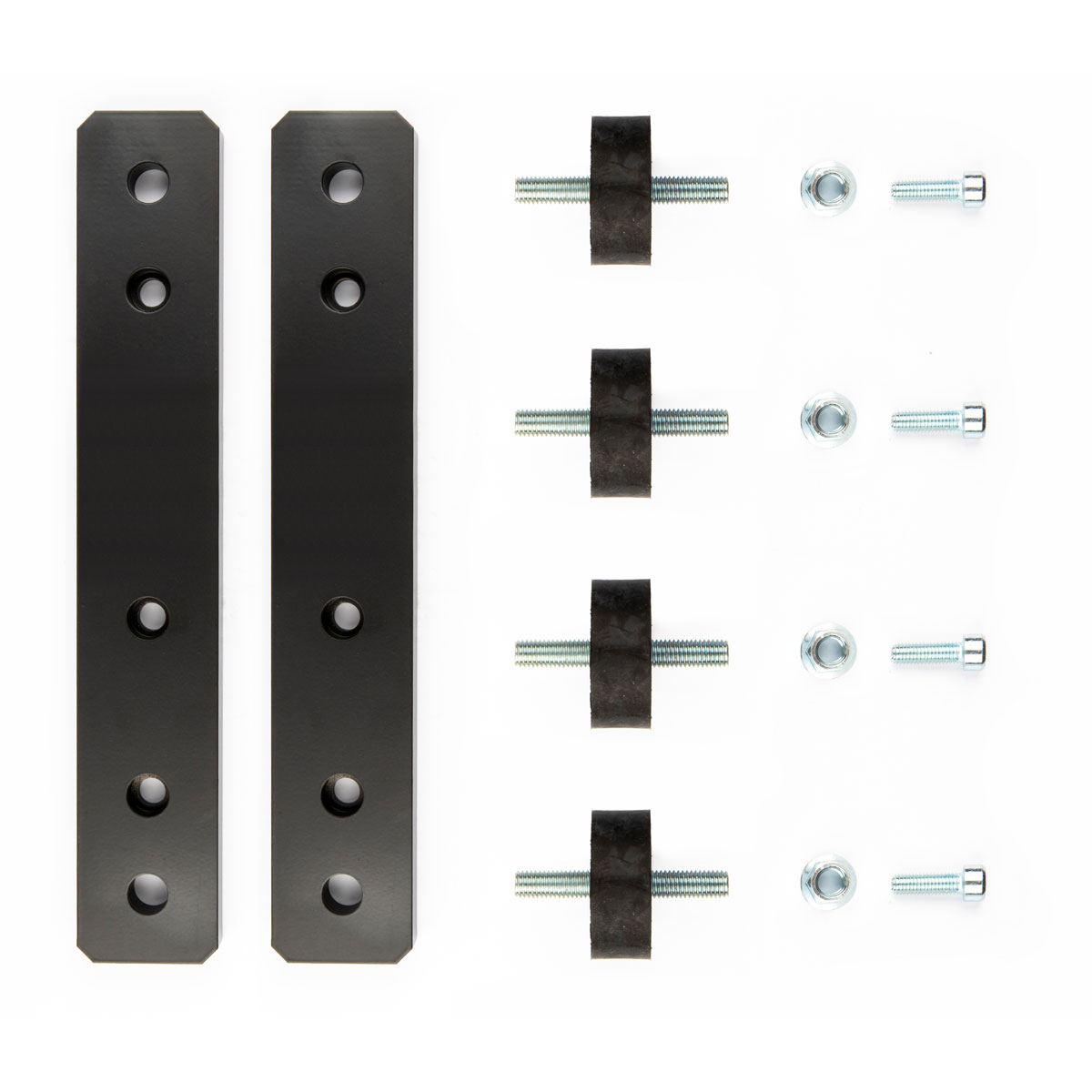 Brackets and shock absorbers kit for proper vertical installation of the heat exchanger. 2 brackets, 4 shock absorbers, 4 screws, 4 nuts.